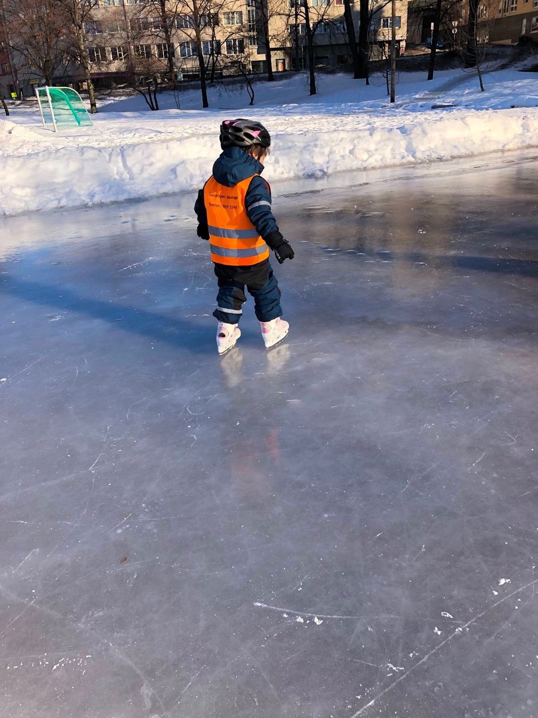Førskolebarna hadde skøyte-uke i uke 7. Det var litt vanskelig til å begynne med men de lærte fort å stå på skøytene. De var veldig selvstendige, fant ut av løsninger og metoder for å reise seg opp på skøytene, etterhvert også gå rundt på skøytebanen uten hjelp.